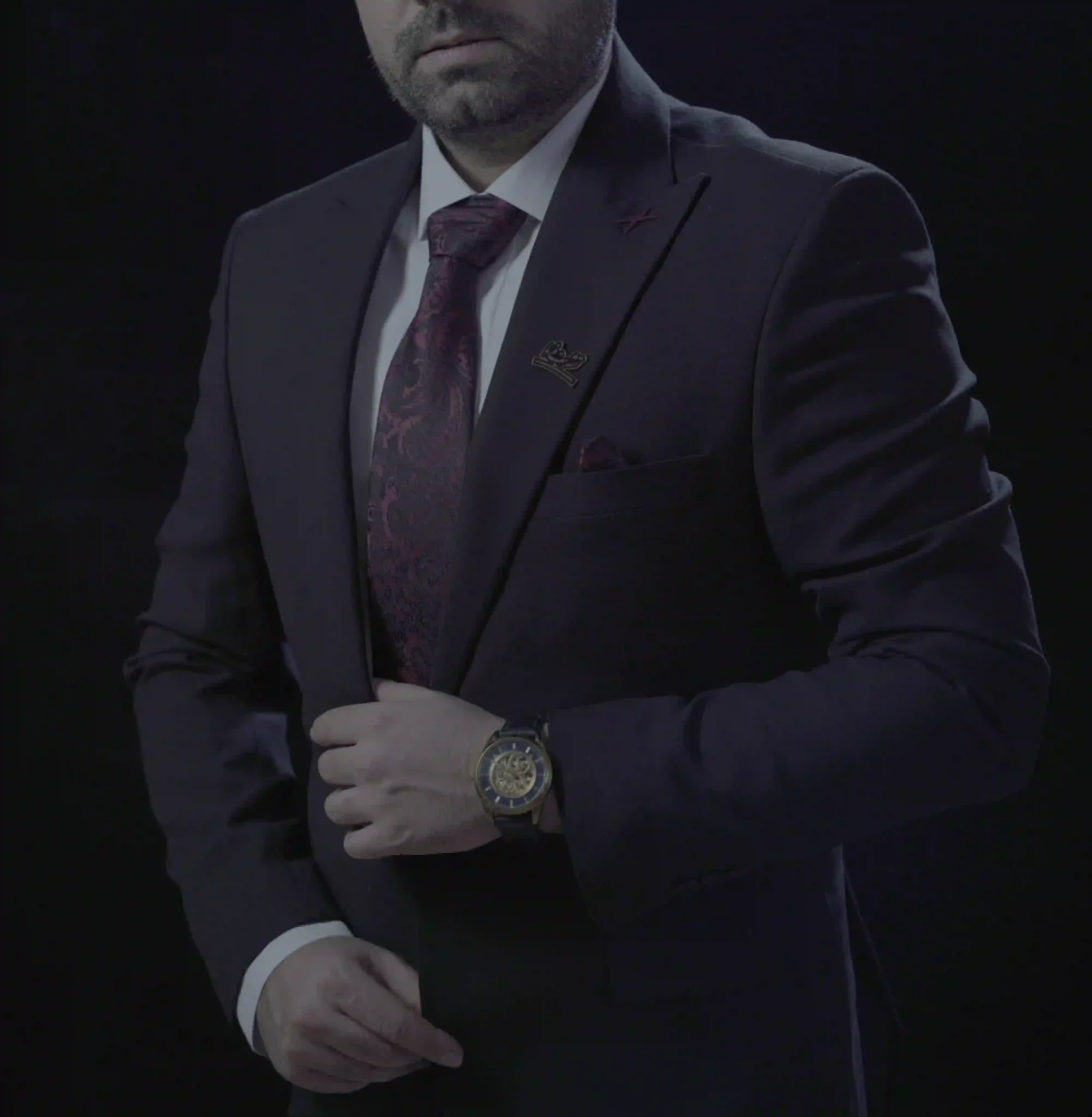 دکمه‌های سردست نقره‌ای یا طلایی نه تنها یک لمس لوکس به لباس می‌افزایند، بلکه شخصیت شما را در جزئیات نشان می‌دهند. دستمال جیب، هماهنگ با کراوات یا پاپیون، به استایل شما عمق و ظرافت می‌بخشد و عکس‌ها را زیباتر می‌کند.