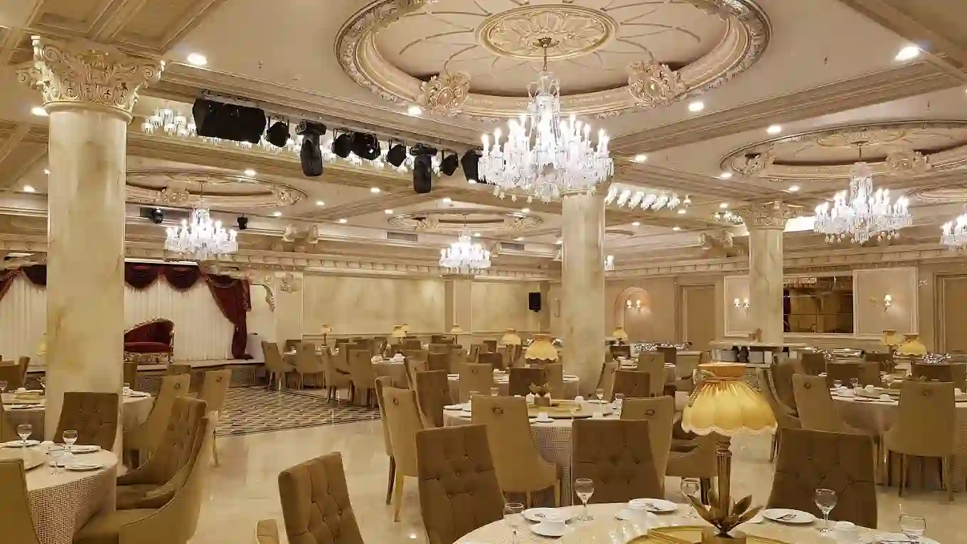 - تالارهای لوکس و مدرن: مناسب برای مراسمهای بزرگ با سالنهای بدون ستون، نورپردازی حرفهای و دکوراسیون شیک.